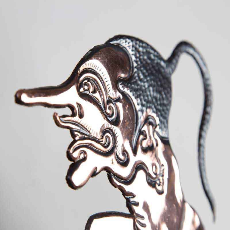 • Artisanal Craftsmanship: The piece is skillfully hand-cut and hammered to capture Petruk’s distinct features, including his famously long nose and lively posture.